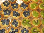 The tarts are a butter cookie shell with pastry cream filling and assorted summer time fruits.